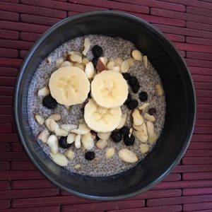 Замочите 3 столовые ложки семян чиа в 250 мл стакана миндального молока на ночь в холодильнике. Утром добавьте немного сушеной или свежей черники, миндальных ломтиков и кусочков банана. Этот легкий завтрак GFCF имеет все: здоровые жиры, белки, углеводы и клетчатку. Хорошее питательное начало нового дня!